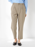 麻の様な清涼感と万能な着回しが魅力のポリエステルテーパードパンツ