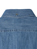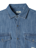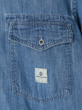 ウエスタン調のデニムシャツ。フラップのついた胸ポケットやメタリック感のあるボタンなど、機能的でありながらスタイリッシュに仕上がっています。