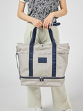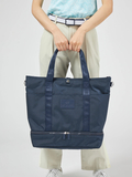 底部分をファスナーで仕分けており、シューズや着用済みの衣類を分けて収納いただけるロッカーバッグです。キャリーバッグの持ち手にジョイントができ持ち運びも便利です。ゴルフシーンのみならず、ご旅行や出張にも役立ちます。