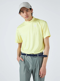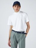 リゾートに映えるブルーとイエローが見た目に楽しく、ホワイトはシックに着やすいモックネックTシャツです。あえてリブなどを使わず、本体生地のみにする事でスッキリとしたデザインです。