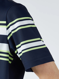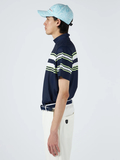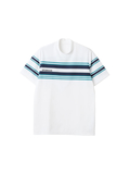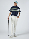ベーシックな白と紺がベースカラーなので、ボトムを選ばずに合わせやすい一枚です。