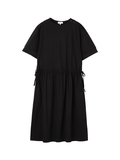 ゆったりとした涼し気なシルエットで着用出来るほか、ウエスト両脇のリボンでブラウジングさせたシルエットが楽しめるワンピースです。