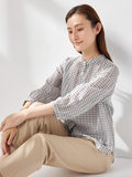 清涼感があり肌離れのよい80ローンブラウスです。緩やかな袖で風通しが良く暑い夏の一枚着としてはもちろん、羽織としてもご着用いただけます。