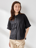 清涼素材の風通しの良いドルマンスリーブバンドカラーシャツ