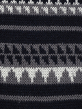 セーターとリンクさせたジャカード柄を使用。クラシック過ぎないよう幾何学モチーフにしています。