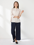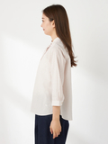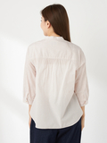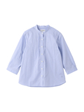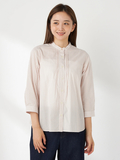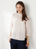 襟元のタックがポイントで、すっきりとしたシルエットの7分袖バンドカラーシャツです。