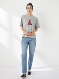 ブランドアイコンのマックベアをプリントしたリラックスTシャツです。左脇のチェック柄ピスネームと赤い襟伏せテープがさりげないアクセントです。程よく詰まった襟元と、ややゆとりのあるボディシルエットです。