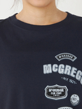 マックレガーアーカイブのワッペンやアップリケなど楽しいモチーフをプリントで散りばめたTシャツです。左脇のチェック柄ピスネームと裾ラウンド・スリットがアクセントです。さりげなくヒップをカバーしてくれる着丈と、程よくゆとりのあるシルエットが魅力です。