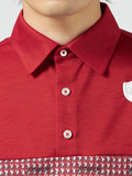 無地と柄の切替がポイントのポロシャツ