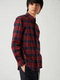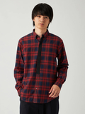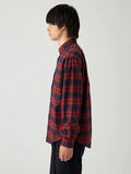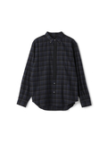 ■FABRIC細番手で織り、繊細な風合いになるように起毛をかけたネル素材。カジュアル過ぎず、品のあるキレイなイメージのネルです。■MODELコンパクトな小さめな衿が特徴のボタンダウンシャツ。フロントにはネクタイをイメージした別素材の切替を入れています。