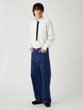 ■FABRICブリーチしたデニムのカラーを縦糸で表現したストレッチデニム素材。■MODELワイドシルエットの5ポケットパンツです。腰回りの設計をテーラード寄りに作ることでコンパクトなヒップと、綺麗なシルエットを実現しました。