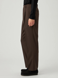 ■FABRIC梳毛糸を使用した平織りウールトロピカル。ハリとストレッチ性があり安心感のある素材です。■MODELシルエットはテーパード。ウエストの2プリーツから綺麗なドレープと裾への落ち感が美しいパターンです。後ろウエストのみゴムシャーリングにし、イージーパンツのようなリラックスしたはき心地もポイント。