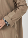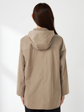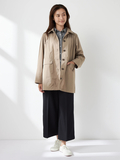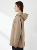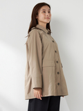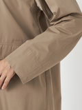 フード脱着可能な軽量ステンカラーコートです。袖を折り返しやすいよう、袖の見返しを深めにとっており、袖丈の調整が可能です。コンパクトに折りたためる素材で、旅行などにも最適な一着です。