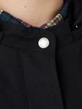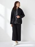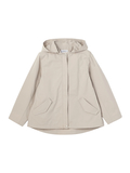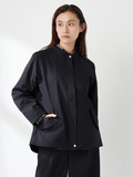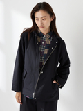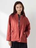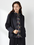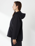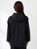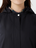 やわらかなAラインシルエットと、取外し可能なフード仕様で軽やかな仕上がりです。後ろ丈を少し長めにすることで、ドローコードを絞った際のシルエット変化を楽しめます。
