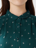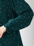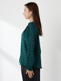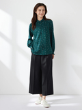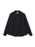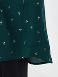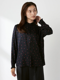 ポリエステルのダブルサテン素材に、バラのつぼみのオリジナルモチーフをプリント。落ち感がある素材で、シワになりにくくデイリーユースにピッタリです。