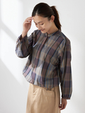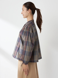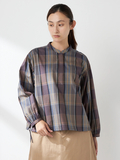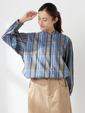 細番手・高密度のコットンチェック素材は、ハイクオリティでしなやかな肌ざわりが魅力です。マルチカラーが織りなすチェック柄で、秋ムード漂うアイテム。一味違った洗練された印象のプルオーバーブラウスです。