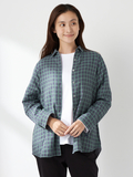 チェックを主役に1枚着のチュニックとしても活躍します。インナー使いするときは、千鳥面を表にすることでコーディネイトしやすくお勧めです。