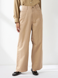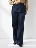 ほんのりハイライズシルエットを生み出すポケット周りの切り替えが新鮮な、カジュアルパンツです。セミワイドシルエットで、腰回りをスッキリ見せるデザインが特徴です。