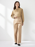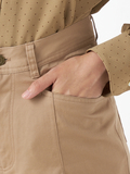 程よくハリのあるコットンチノ素材は、明るく華やかさのあるベージュとトープ。インディゴデニムを含めた3色展開です。