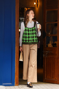 カジュアルな装いに欠かせないアイテム。シルエットのきれいさを際立たせる為に、やや短めのクロップド丈のトップスとのスタイルもおすすです。同時期展開のアーガイルニットベストと合わせて、今年らしいカジュアルスタイルをおすすめします。
