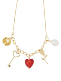 揺れるパールやロースモチーフ・ハートのパーツが女性らしさを演出。シンプルなTシャツにつけるだけで華やかなコーディネートにクラスUPします。