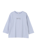 ややリラックスシルエットのベーシックな7分袖Tシャツです。クラシカルなクロスステッチ風のロゴをプリントし、コーディネートのさりげないポイントになります。