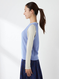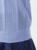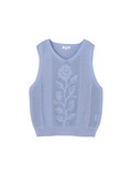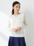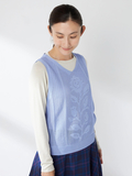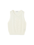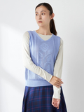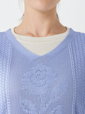 イングリッシュガーデンをイメージしたローズモチーフを、トレンドのレース編みで表現したニットベストです。浅めのVネックが、女性らしさをプラスするデザインポイントです。