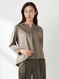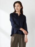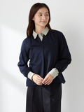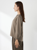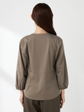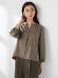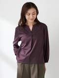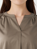 八分袖のプルオーバーブラウスです。キーネックデザインと襟元のギャザーアクセントでシンプルながら上品な1着。