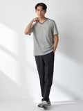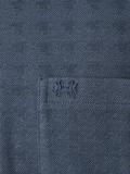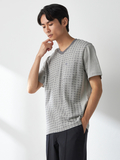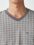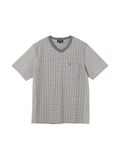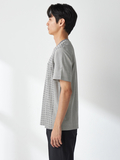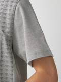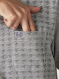 前身頃にミニ千鳥柄、袖と後身頃はジャガードの無地になっています。衿はニットのような編み衿になっており一味違う大人のTシャツになっています。