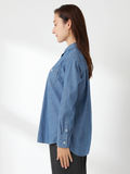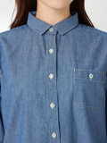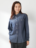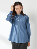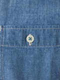 配色ボタン付け糸がアクセントのベーシックダンガリーシャツ