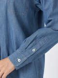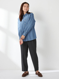 ややゆとりのあるドロップショルダーで、現代的なシルエットのベーシックダンガリーシャツです。ボタン付け糸の配色がさりげないデザインポイントです。