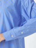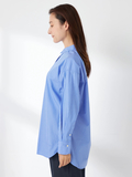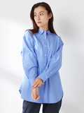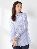 フォルムにこだわったマルチストライプのロングシャツ■デザイン襟周りはノーステッチできれい目なデザインシャツです。リラックス感のあるシルエットと、袖口ロングカフスデザインがポイントで、一枚でも様になるおしゃれシャツです。■素材しなやかなコットンブロードマルチストライプです。■コーディネート同時期展開のリップルベストとのレーヤードスタイルがお勧めです。すっきりとした、ボトムとの相性が良いアイテムです。