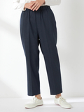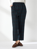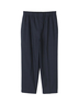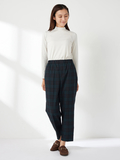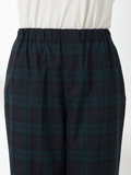 ヒップ周りがゆったりしたテーパードシルエットのクロップドパンツです。ウエストは総ゴム仕様ですが、上品な素材感できちんと感をプラスします。