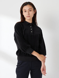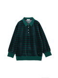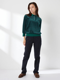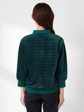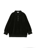 レトロスポーティなベロア素材感のポロプルオーバーです。シルエットは今っぽくゆったり、後ろ丈が長めで袖もふんわりした女性らしいシルエットです。
