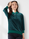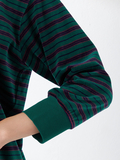 オリジナルのマルチボーダーは、大人っぽく着られるようグリーンを中心にネイビーやボルドーとの配色にこだわりました。コットンの起毛素材は肌にも優しく気持ちの良い素材感で、長く着ていただけます。