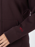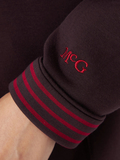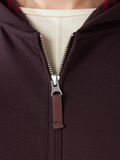 形はベーシックなながら、フード裏や袖口裏などがボーダーでアクセントとなるジップパーカーです。袖口のオリジナル刺繍や、ボーダーに合わせた閂カラーなど、小さなこだわりの詰まった一着です。