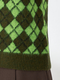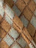フェアリー糸でフェミニンなアーガイル柄の編地です。編み込まれたさり気なく輝くラメ糸が、トレンド感をプラスします。