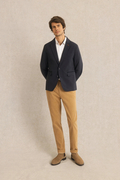 軽量なキルティングジャケットにテクニカルな要素をプラスすることで、クラシックなテーラリングの限界を押し広げるネイビーのブレザー。スタイルを犠牲にすることなく肌寒い朝を迎えるのに最適な、しっかりとしたルックスと抜群の快適性を兼ね備えています。