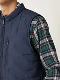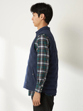 ステッチレス構造の二重織生地を使用した軽量ダウンベスト