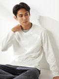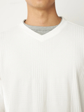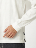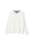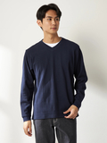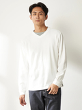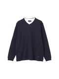 重ね着風おしゃれが一枚で楽しめるレイヤード風ロンT■デザイン浅Vネックと別素材Tシャツを重ね着したような一枚で決まるTシャツです。■素材表情のあるリンクスジャガードはさらっとした心地良い肌触りです。■コーディネートシンプルなデザインなので一枚で着てもカジュアルアウターのインナーとしても着回しの効く便利な1枚です。