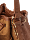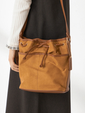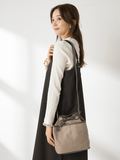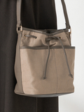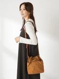 アクティブさと上品さを兼ね備えたリボンアクセントショルダー季節感のあるスウェード調の素材がポイントのショルダーバッグです。アクティブな印象ながら、リボンアクセントが女性らしさをプラスします。大きめの外ポケットも便利です。