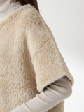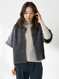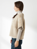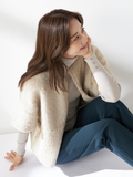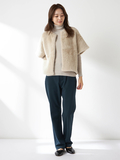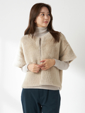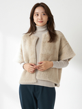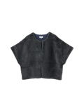 ドロップショルダーで抜け感がありつつ、ボレロ風のアウターとして着用できます。後ろ裾にゴムが、丸みのあるシルエットをつくります。