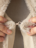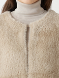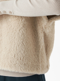 毛足のあるシャギー素材が、秋らしい表情をプラスします。ナイロンとポリエステルを使った糸のシャギー素材は、滑らかな風合いが特徴です。裏面は毛が噴き出さない編地で、快適な着心地です。