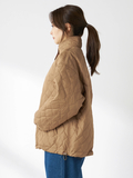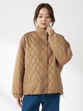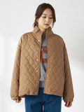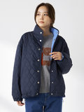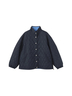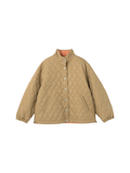 EDIT-Bチームリバーシブル中わたブルゾン■デザインスポーツチームをイメージしたリバーシブル中わたアウター。フロントドットボタンでコーチジャケットテイストなアイテムです。A面は、波打つステッチが立体的なひょうたんキルト柄、B面はワッフル編みのジャージ素材で異なる表情を楽しめます。ドロップショルダーと、裾のゴム仕様による丸みのあるシルエットで、程よい抜け感のあるアイテムです。■素材A面は、撥水加工の高密度ポリエステルタフタで、程よい厚みとしなやかな手触りが特徴です。B面は、鮮やかなカラーのポリエステルワッフル素材を使用しています。それぞれプレッピームード高まるスポーティなカラーを楽しめます。■コーディネートデニム合わせでスポーティに、プリーツスカート合わせでプレッピーなスタイルを楽しめます。