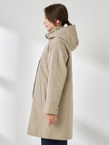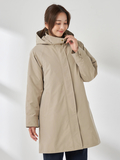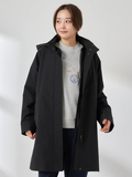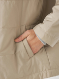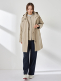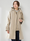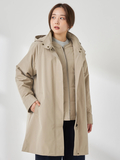 【撥水加工】シルエット変化を楽しめる3wayスタンドカラーコートです。■デザイントレンド感のある高めのスタンドカラーがポイントで、前を開けて羽織っても美しく収まるデザインです。裾のドローコードを絞ることで、コクーンシルエットにもアレンジ可能。シンプルなノーカラー中わたライナーは、軽量ブルゾン感覚で単体でも活躍します。■素材撥水加工を施した、しなやかなポリエステル素材です。■コーディネートカジュアルなコーディネートはもちろんですが、トレンド感のある襟の見え方やフォルムで、キレイ目コーディネイトにも相性が良く、ON/OFFシーンを問わず活躍します。