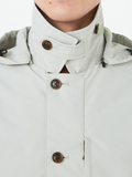 ステンカラーデザインで機能性に優れた3WAYカジュアルコート■デザインライナーやフードが着脱可能な仕様になっているので様々なシチュエーションに対応できるアウターです。■素材シェルの素材には裏面にフィルムをラミネートした、撥水・防風・透湿性に優れた機能素材(マックテクノ)を使用しています。■コーディネートジャケットと組み合わせたビジネススタイリングだけではなく、ニットや起毛シャツと着合わせて、休日のリラックスしたコーディネートにも活躍します。ライナーについても汎用性の高いラウンドネックのインナーダウンとして、単体でジャケットなどのインナーとして活用可能です。
