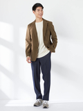 トリコット(ニット)コールが秋らしいカジュアルジャケット■デザインフロント二つ釦、胸ハコポケット、腰フラップポケット、総裏仕様、襟立て時のフラワープリントがアクセントになっています。■素材縦編みニットのポリエステルコーデュロイ素材です。綿のコーデュロイに比べ、起毛した毛が抜けにくく、ソフトな肌触りでストレッチ性にも優れた素材になっています。■コーディネートデニム調のスラックスと合わせることでモダンな英国カントリームードをお楽しみいただけます。また同素材のスラックスとのセットアップも可能です。