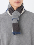 落ち着いた色合いのブロッキングマフラー■デザイン大人の雰囲気を感じる配色で仕上げたブロッキングデザインです。■素材膨らみのあるアクリル/ウールの混紡素材です。■コーディネート片側がループ状になっているので、簡単に装着できます。シックな配色で、さりげなくコーディネートのアクセントが作れます。
