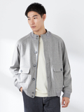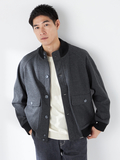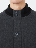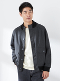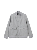 スポーティーシックなヴァルスター型カットソーブルゾン■デザインイタリアの伝統的なブルゾンの代名詞とも言われているヴァルスター型デザインをジャージ素材でアレンジしました。前開きのボタン下はファスナーになっており、本格的なアウター仕様になっています。■素材ウールアクリルを使用したヘリンボーン柄ジャージメルトンです。ジャージ素材の軽量でソフトな風合いが魅力です。■コーディネート布帛のアウターのようにシャツやカットソーの上から羽織る着方がおすすめです。ボトムスはカジュアルからタウンスタイルまで素材を選ばず着こなせます。