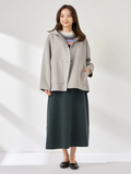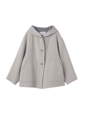 大人の愛らしさ漂うフーデッドショートコート■デザインヒップが隠れるくらいのショートレングスで、ワイドなボリュームがデザインのポイントです。大人カジュアルを演出したパッチポケットは、上質さと愛らしさのバランスを生み出します。フードから覗く裏面の配色もデザインのアクセントです。■素材国内素材に拘ったウールメルトンで、上質なウール特有の厚みと軽さが備わったダブルフェイス素材です。■コーディネートヒップまで隠れるショートレングスは、ボトムのシルエットを選ばずスタイリングが可能です。同時期展開のニットスカートを合わせたスタイルがおすすめです。